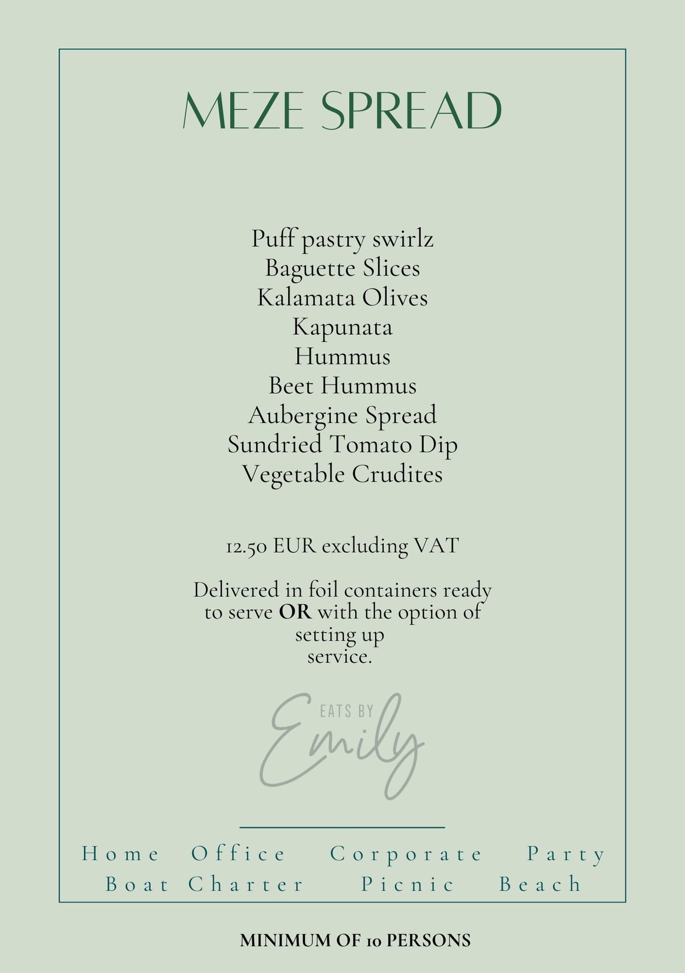 Minimum order of 10 persons.