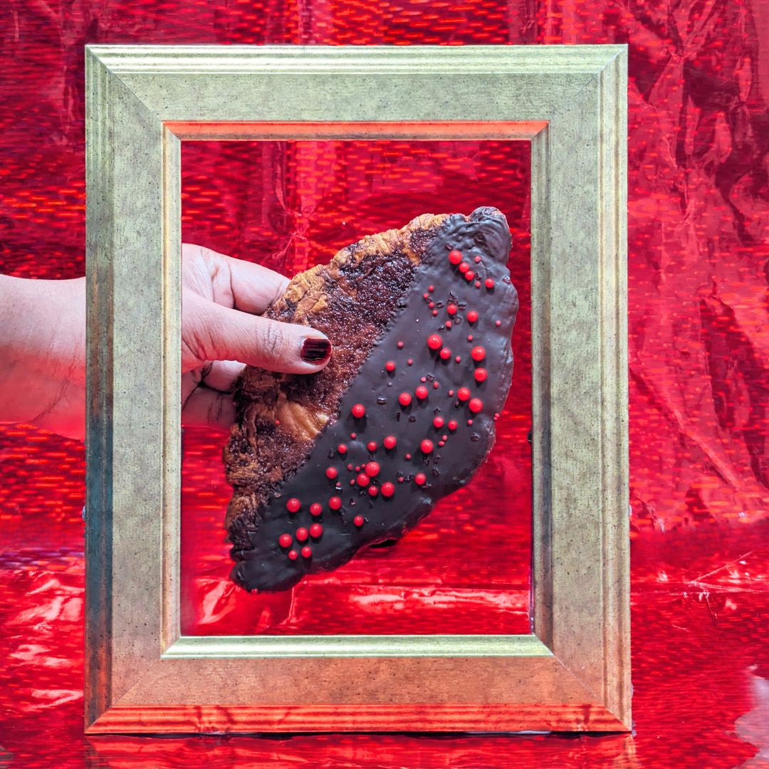 A delicious flattened croissant to a crisp and dipped in chocolate, for the lovers who LOVE THEIR CROISSANTS